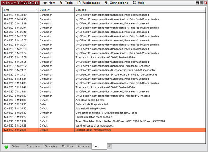 Also, Ninja 8 seems to drop its IQFeed connection a lot for no reason. See third Screen shot.