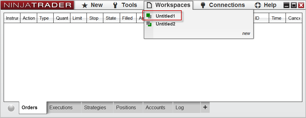In NT7 the current workspace is noted in the window bar of the Control Center