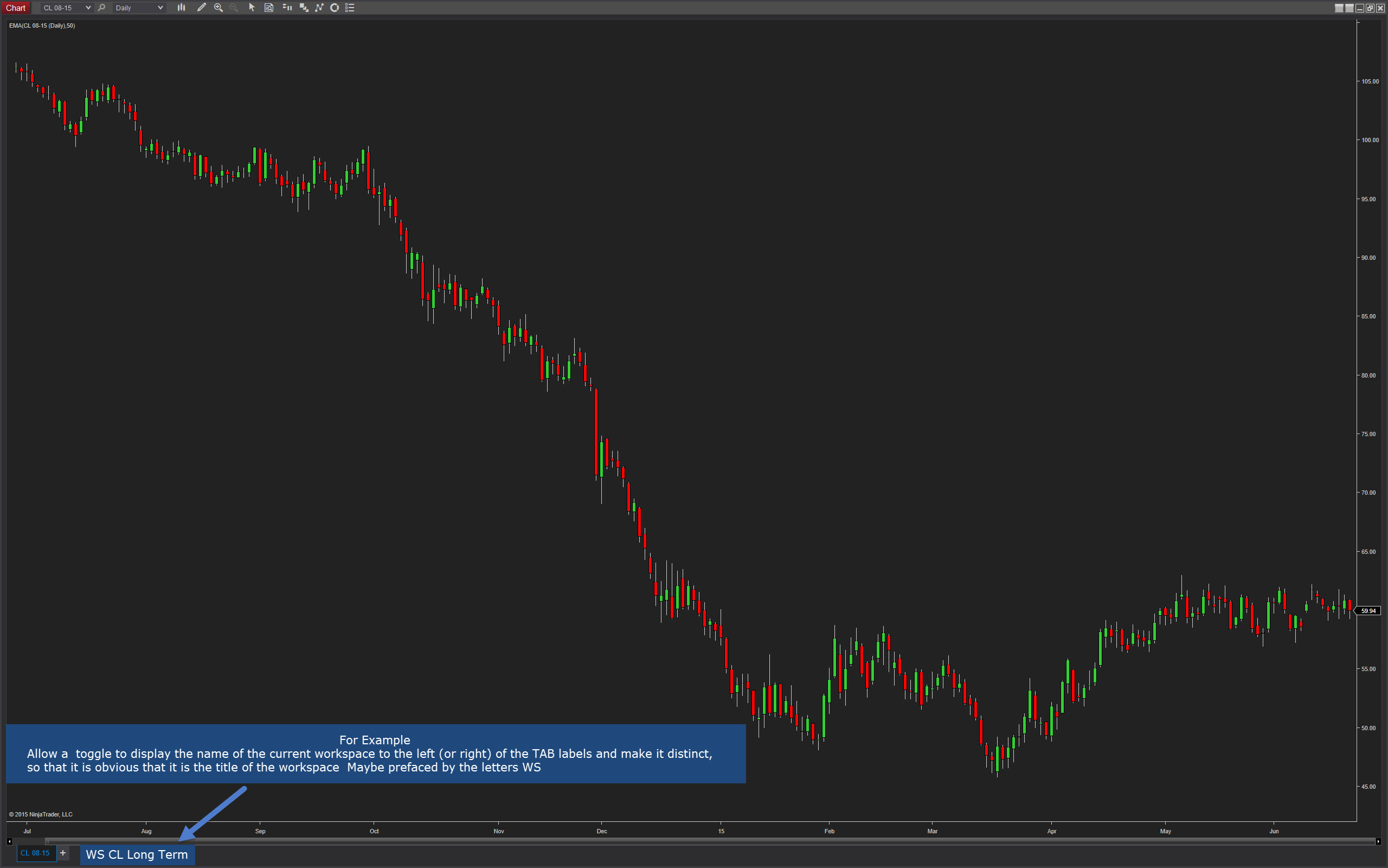 I realize the workflow will be a little different with the addition of TABs but I think it is still useful to see at a glance what workspace is loaded.
