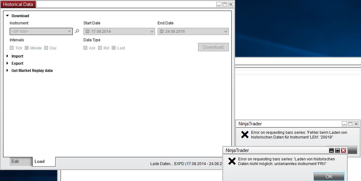 Was set to download tick data for ask, bid and last. Tried for 5 days a couple of times then limited to the current day but encountered the same problem each time.