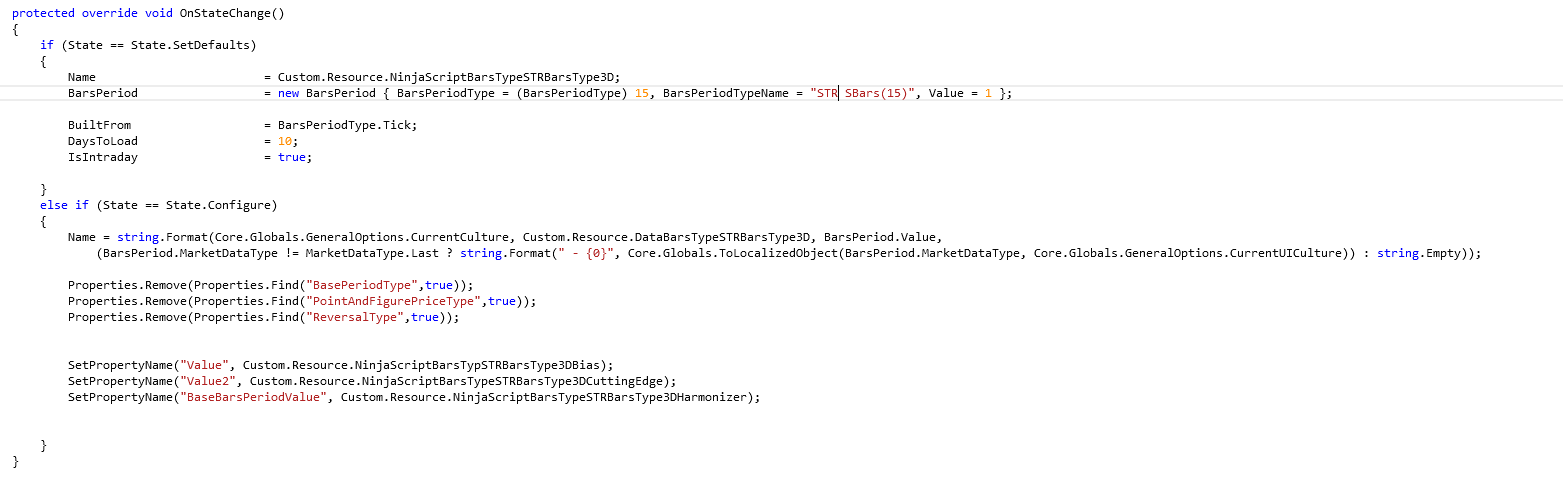 Name = string.Format(Core.Globals.GeneralOptions.CurrentC ulture, Custom.Resource.DataBarsTypeSTRType3D, BarsPeriod.Value, (BarsPeriod.MarketDataType != MarketDataType.Last ? string.Format(" - {0}", Core.Globals.ToLocalizedObject(BarsPeriod.MarketDa taType, Core.Globals.GeneralOptions.CurrentUICulture)) : string.Empty));