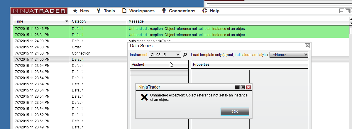 I have attached the error screen Shot and my code screen Shot here.This error happened when we set BarsPeriodType =15 (see the code screen shot).If I set this BarsPeriodType as 14 then it will work as fine.I have not created any other bar type here.The BarsTypes folder contains only the default BarTypes as NT 8 currently provided.(see the DefaultBarTypes ScreenShots)