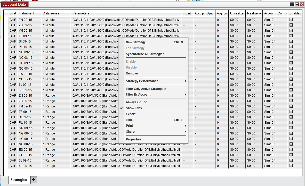 When this occurs, I can manually enable each strategy, but it takes a lot longer. In the attached picture, I have highlighted the strategies to enable and right clicked to select Enable, but that options is grayed out.