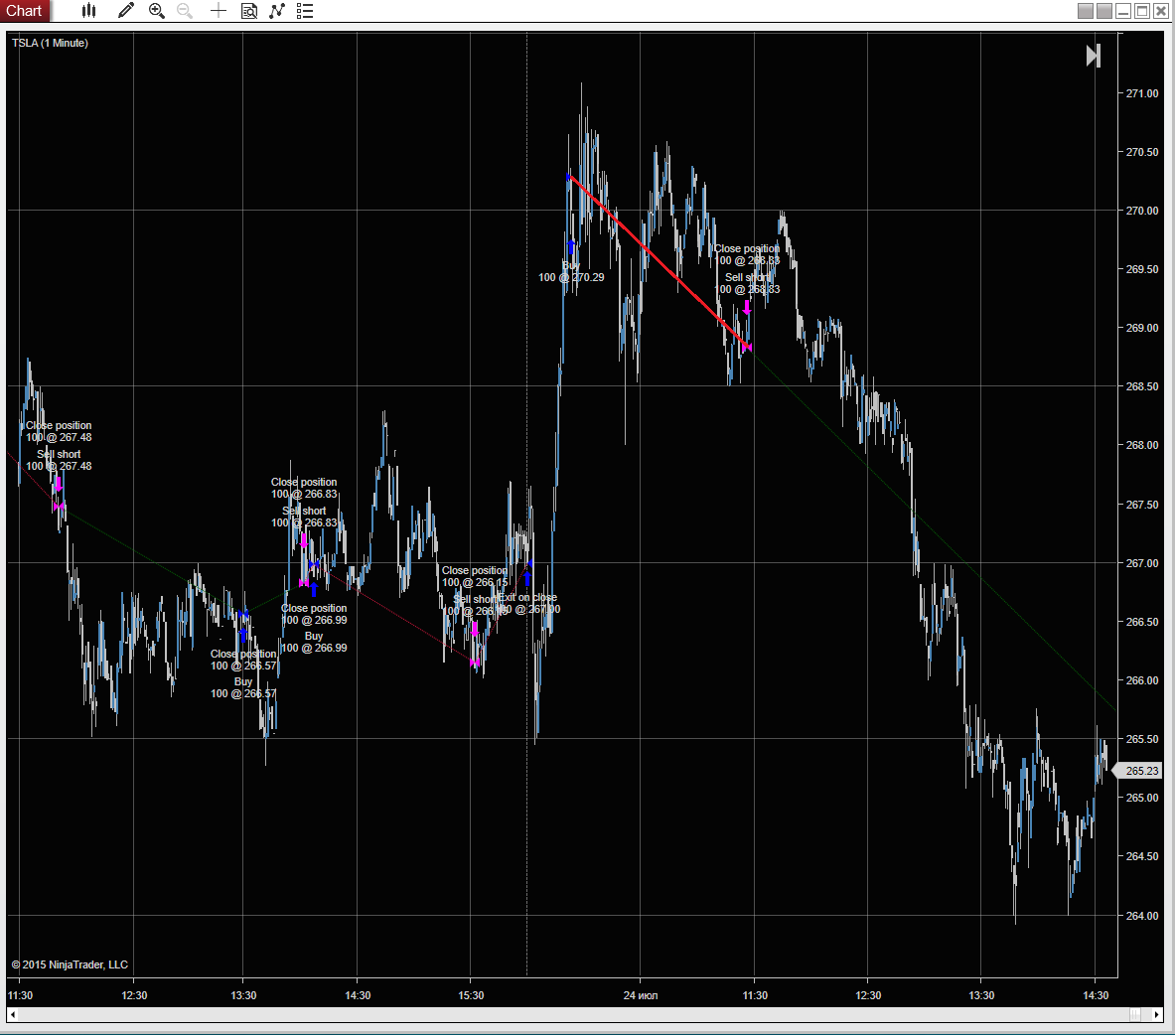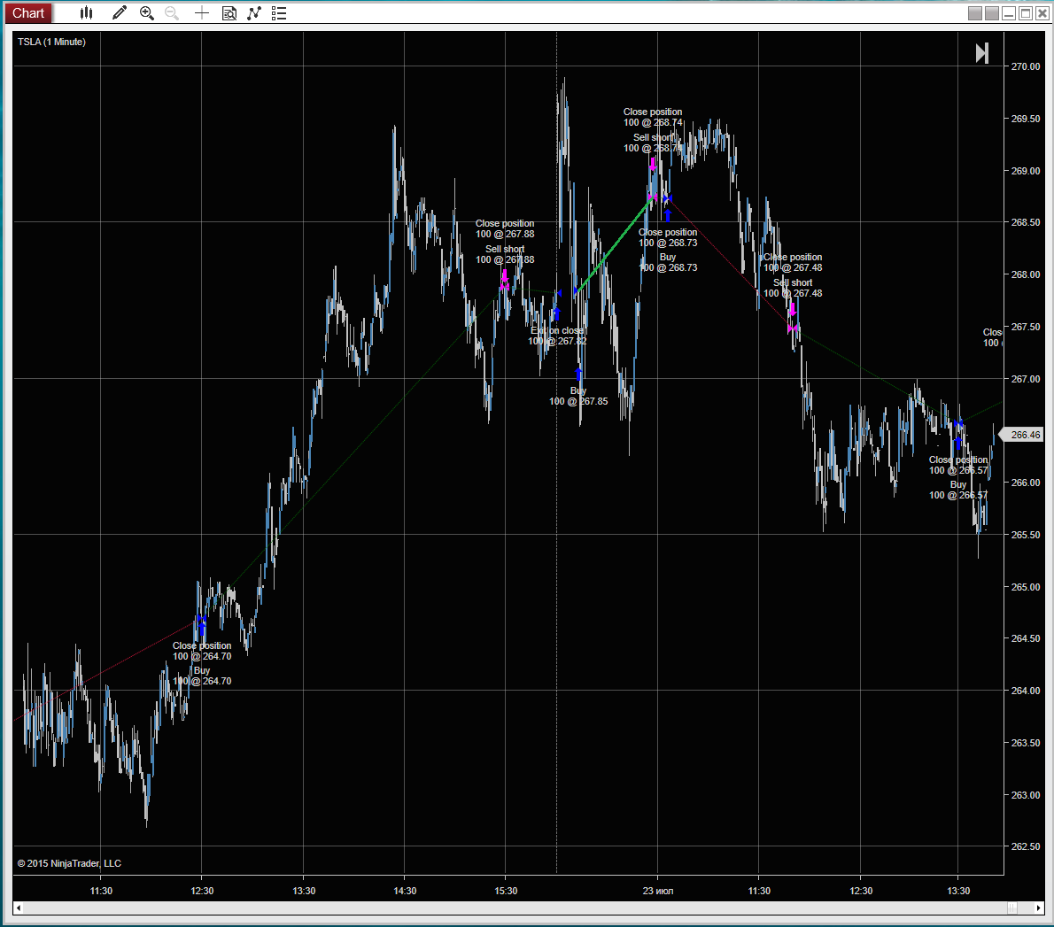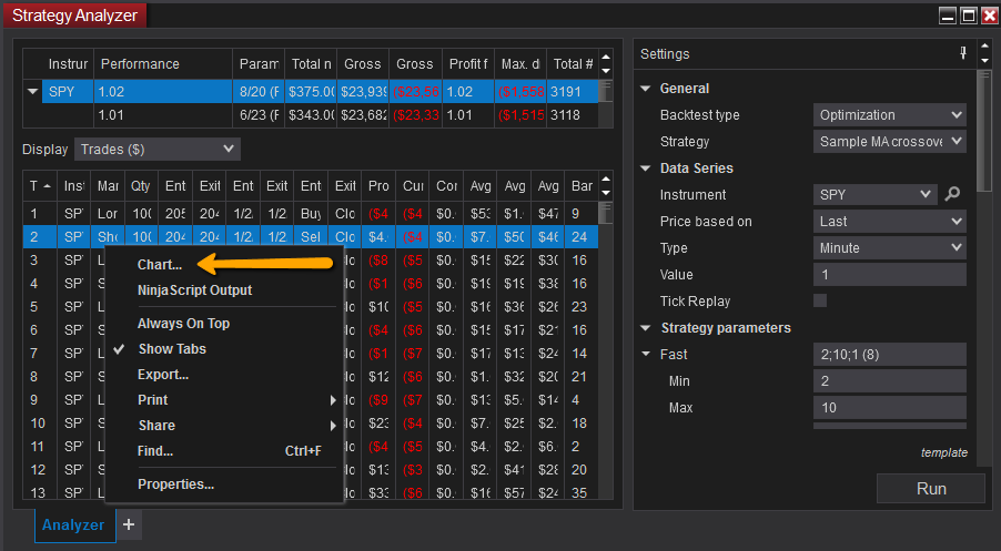 However the suggestion is to link the chart, so whenever you click an execution in the Strategy Analyzer, the chart will move to that execution.
