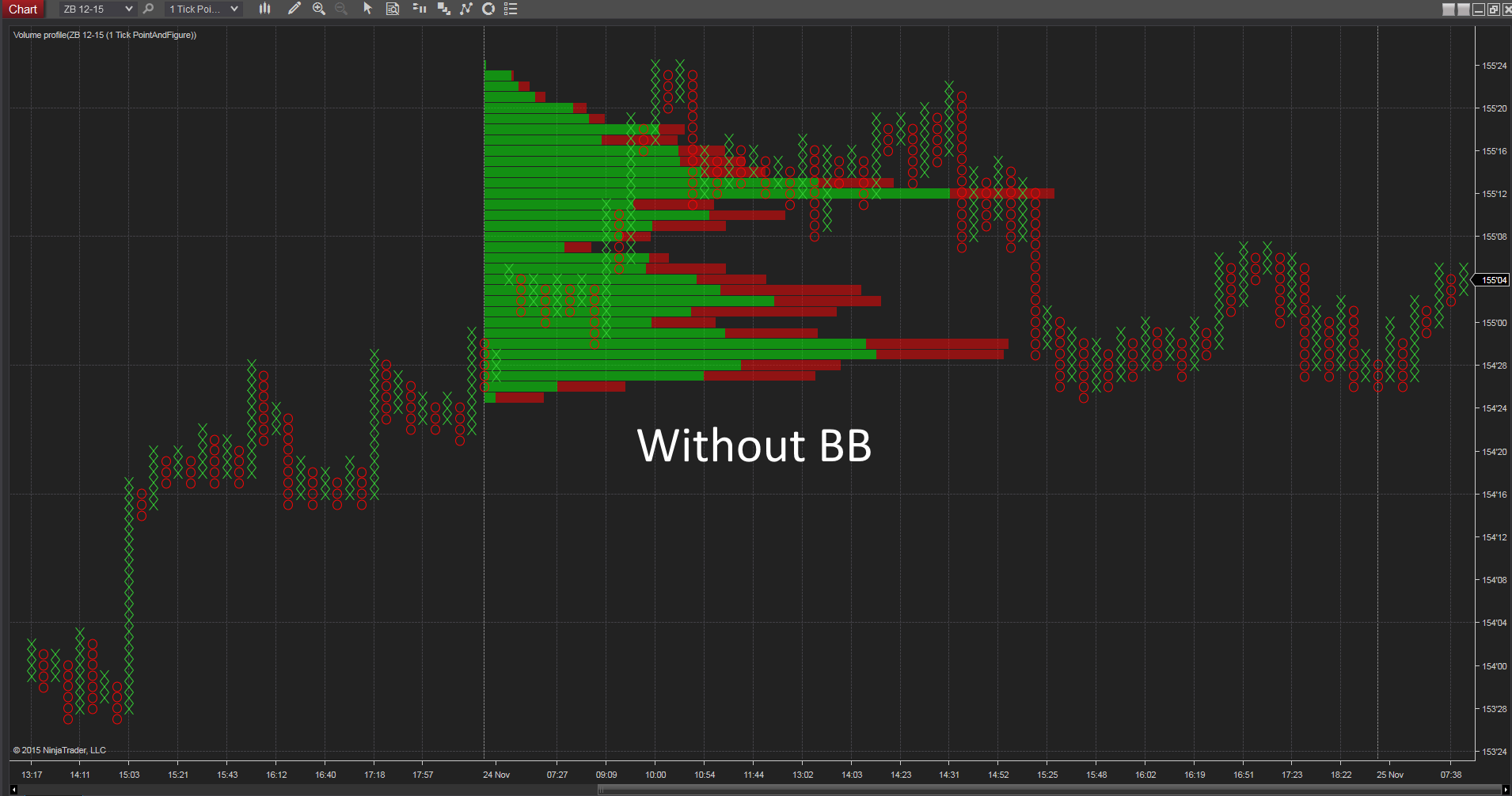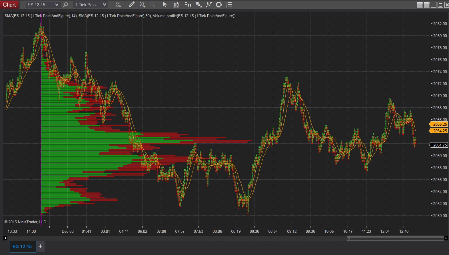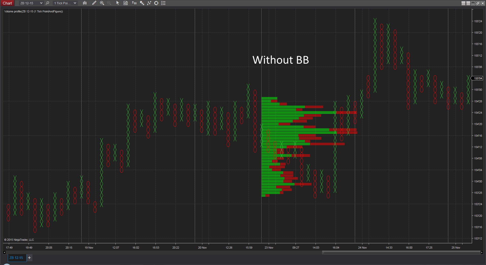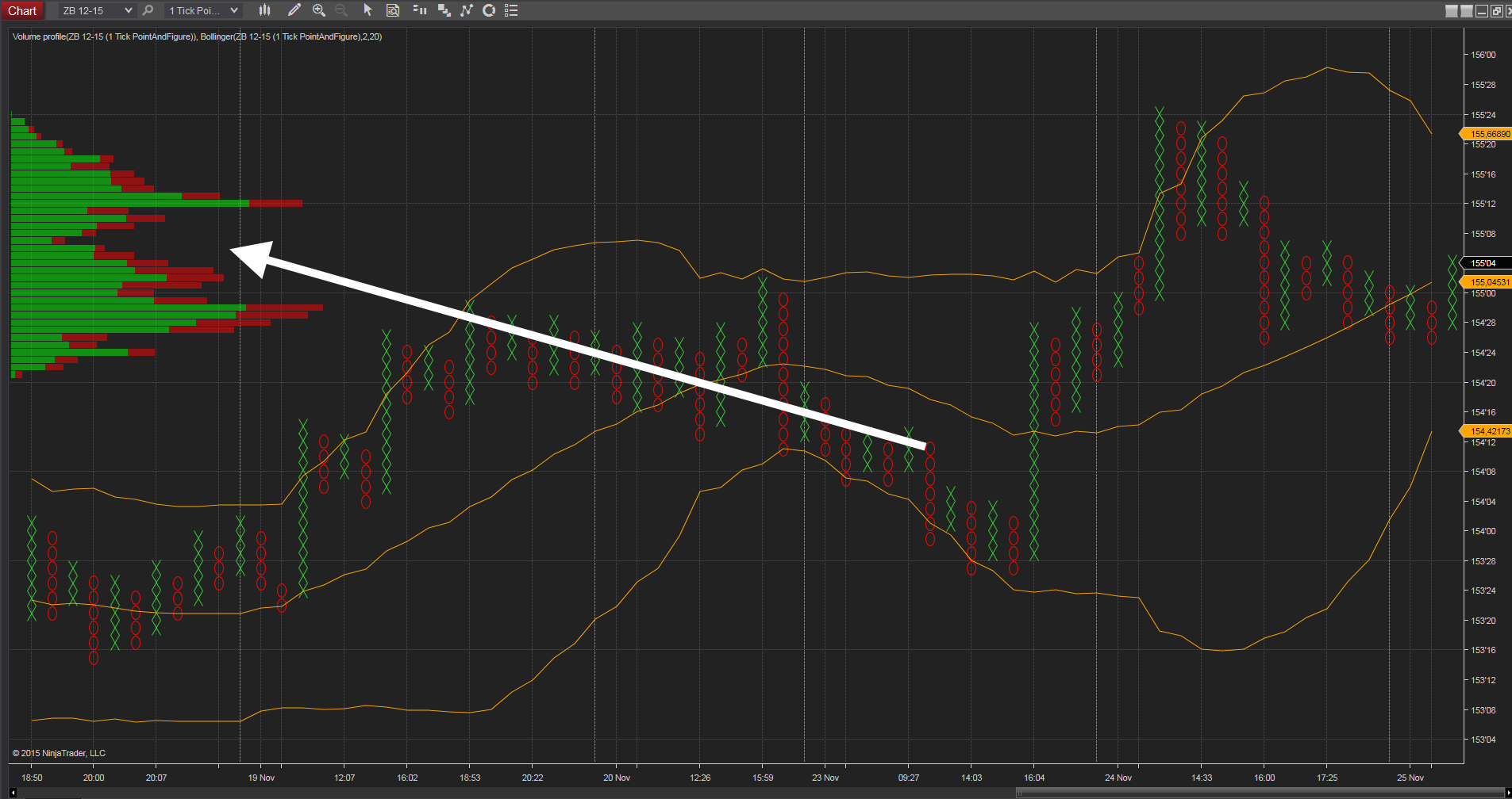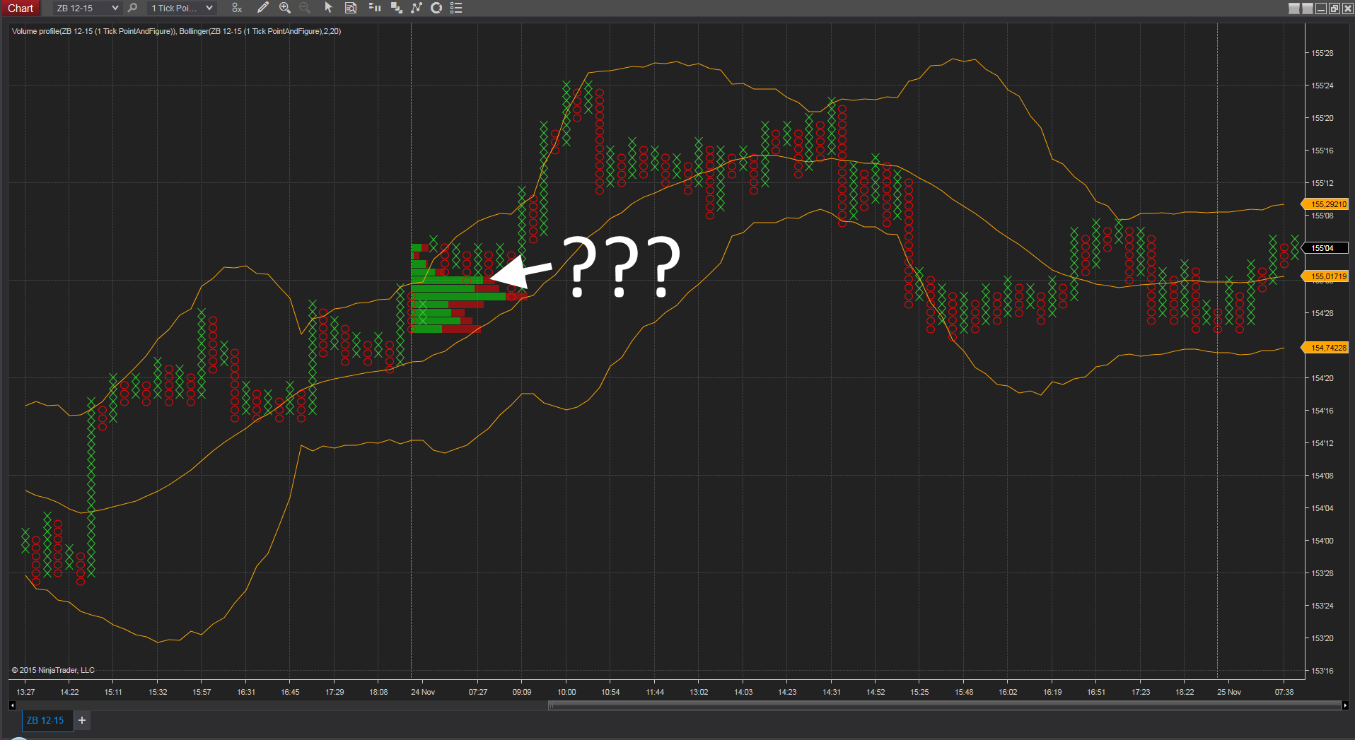 you can produce the behaviour i was talking about, when you apply the standard volume profile indicator to a pnf chart and add bollinger bands to the chart, by adding bollinger bands the volume profile gets messed up. without the bollinger bands the profile indicator works fine. i initially thought it is an issue relating to my indicators, but same thing happens with the nt volume profile. the volume profile gets displaced or completely messed up, see pictures.