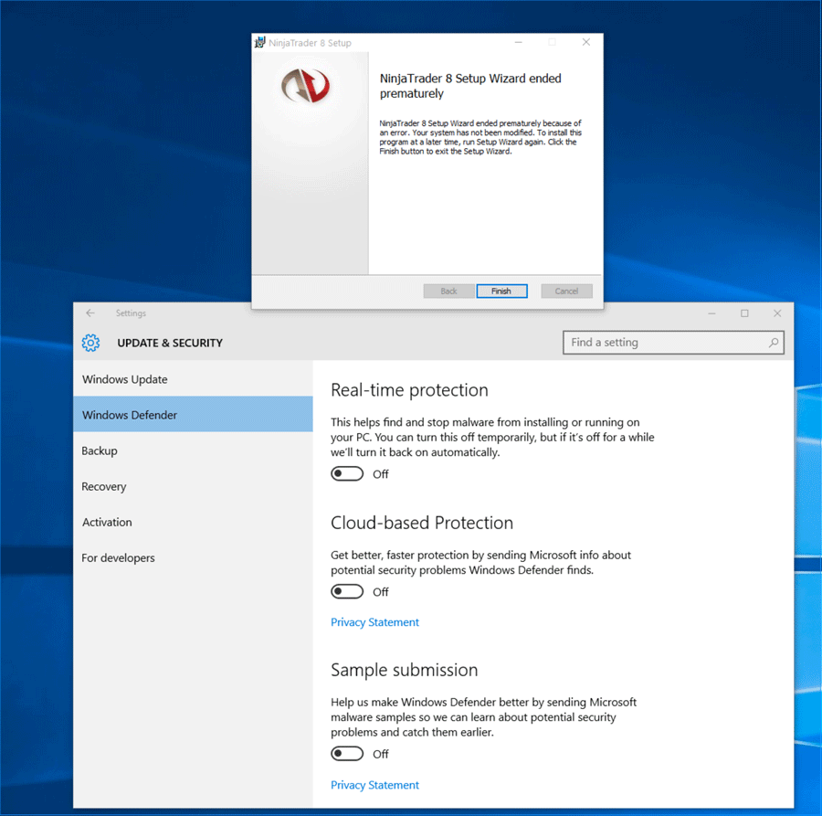 1. Have you already installed an earlier version of NinjaTrader 8 successfully on the computer that is giving you the error?