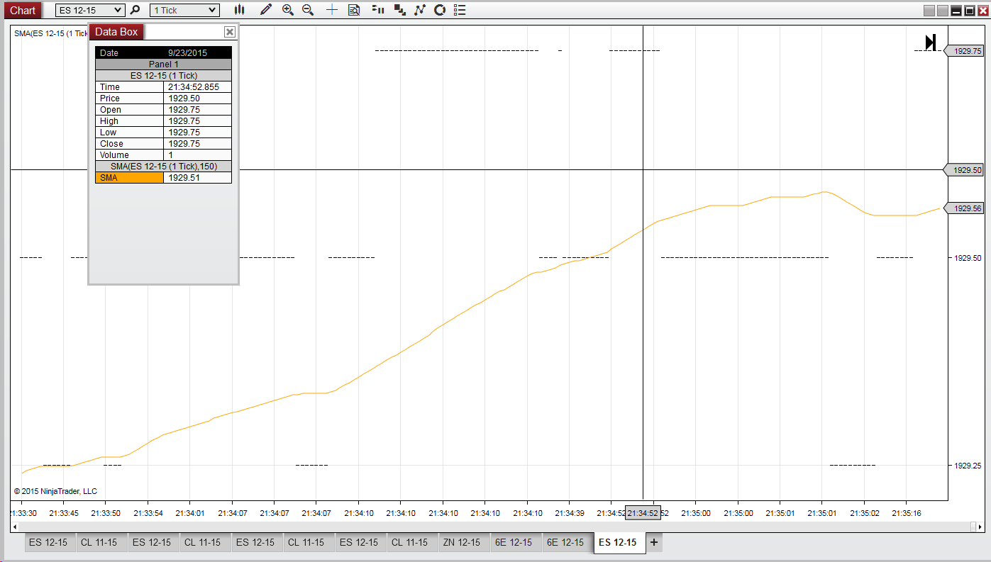 With a 1 tick chart, the Panel 1 part of the DataBox updates (bar number & Volume) for each bar under the cursor, but the indicators doesn't seem to update unless the ms time stamp updates. The data is visible on the chart, but not reflected in the DataBox.