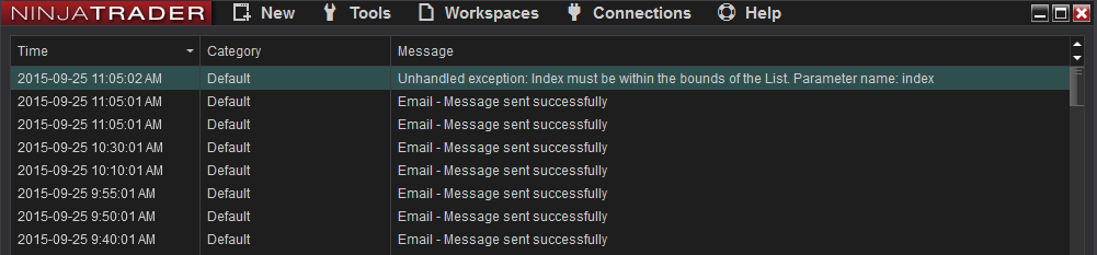 I'm getting this when the market analyzer is firing off alerts through an email share connection.Tags: None