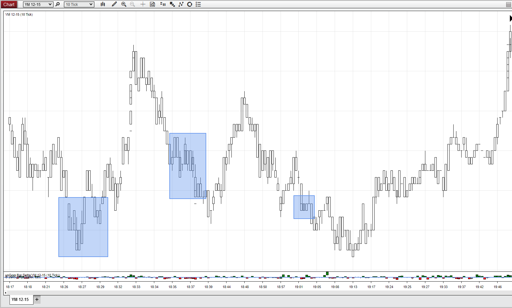 There is another 10T YM price series in a different pane of this same chart. The bars of that price series are not vertically aligned with those of the one in the top pane, they are off by half a slot.Last edited by Ricam; 09-30-2015, 01:11 AM.