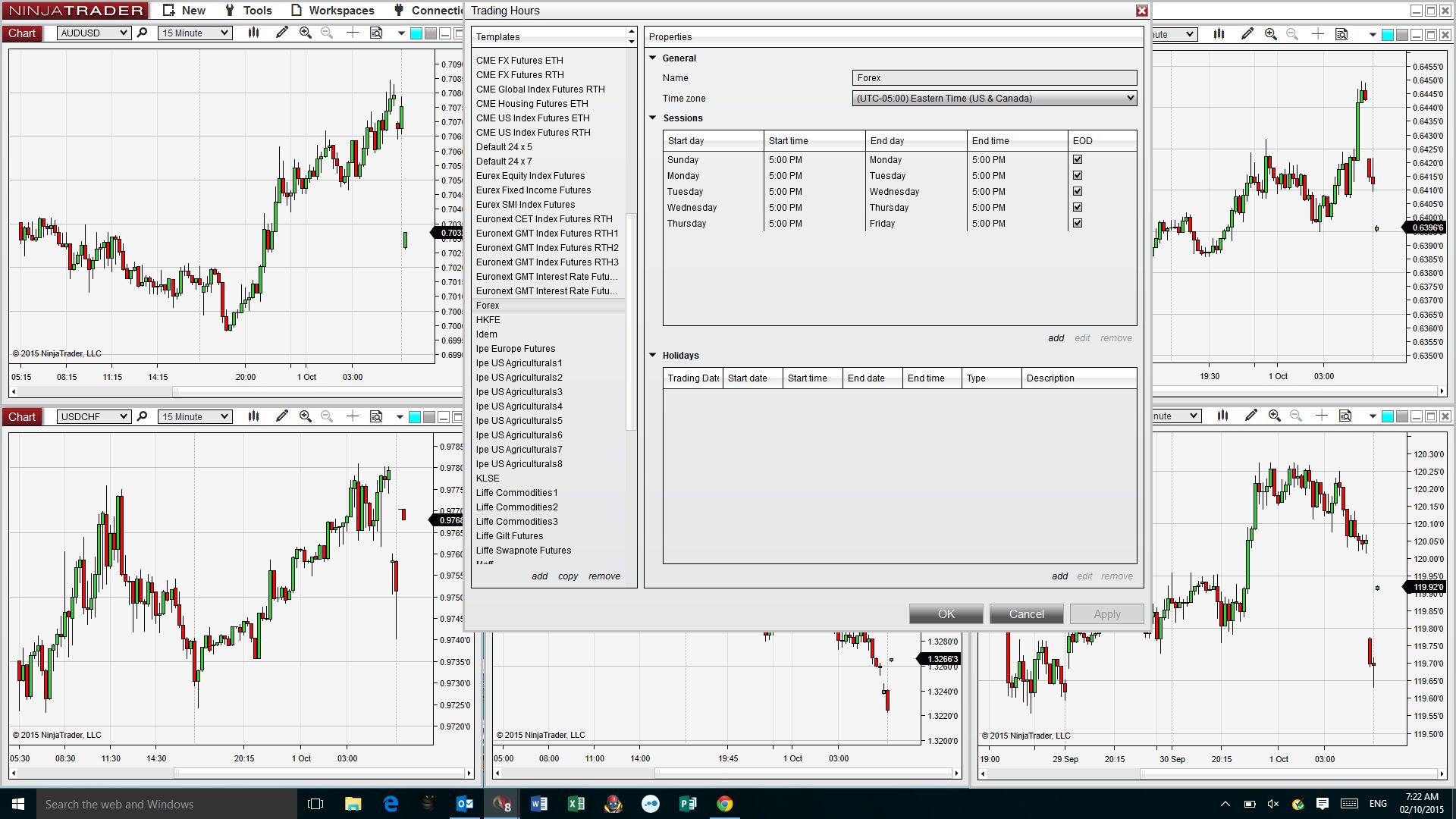 I am using Forex charts with the ‘default session template’ selected which is the just the 5pm EOD (see screenshot).