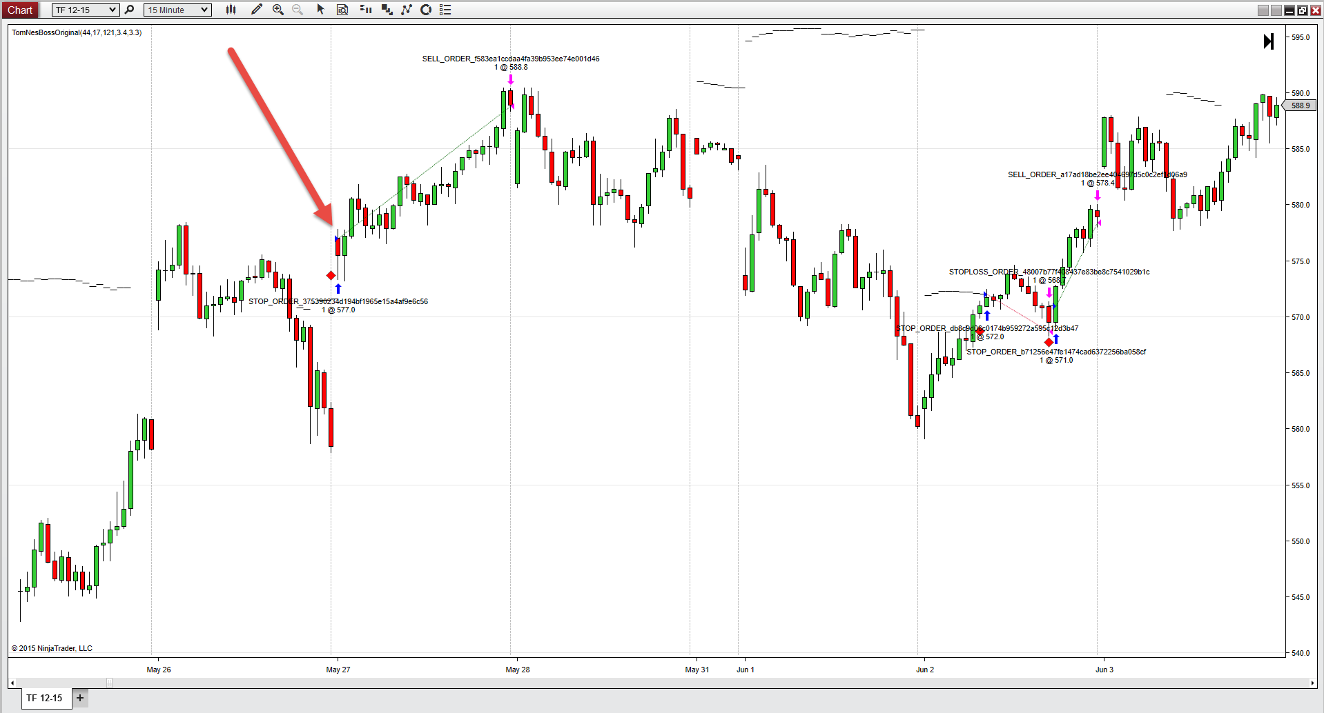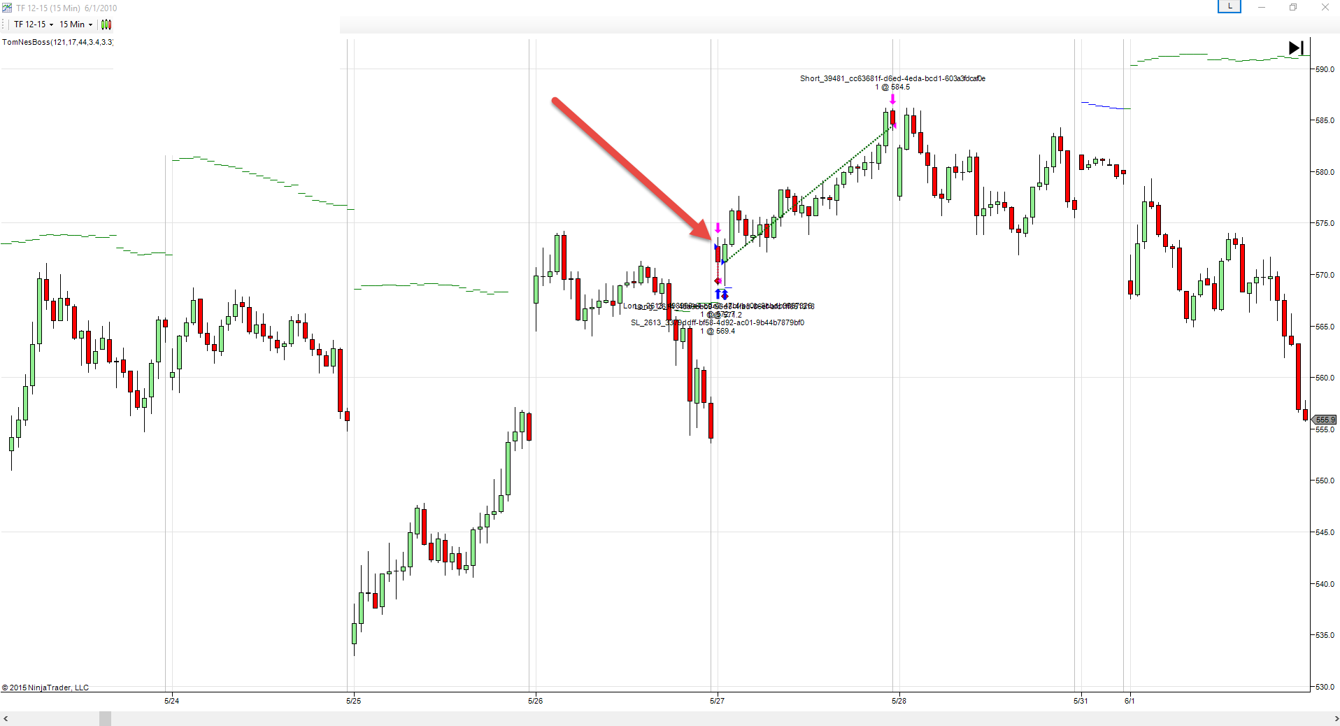 FIRST ORDER - Buy StopMarket Stop price = 564.9.
