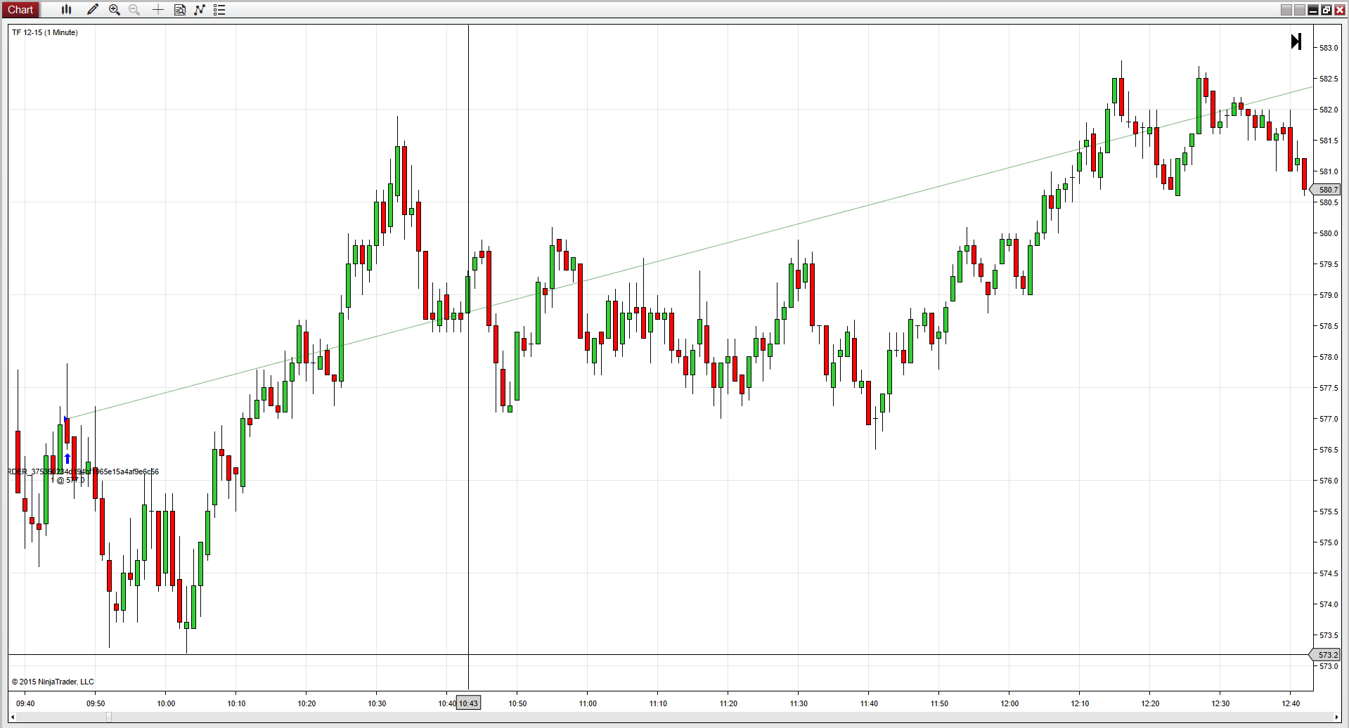 First order filled on 577.1 when candle open.