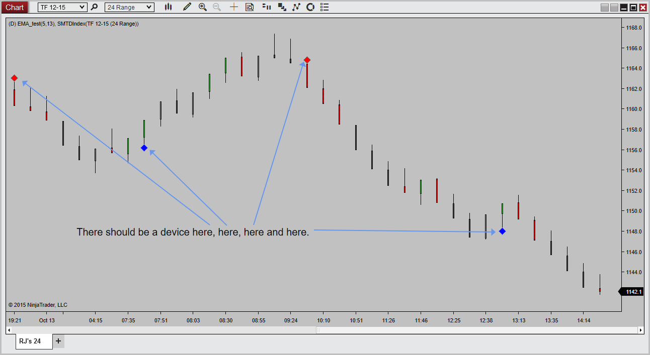 However, when I call this indicator from a strategy, I can't get it to draw the devices. It's supposed to draw diamonds by default but if you set it to a different device, it won't draw those either.