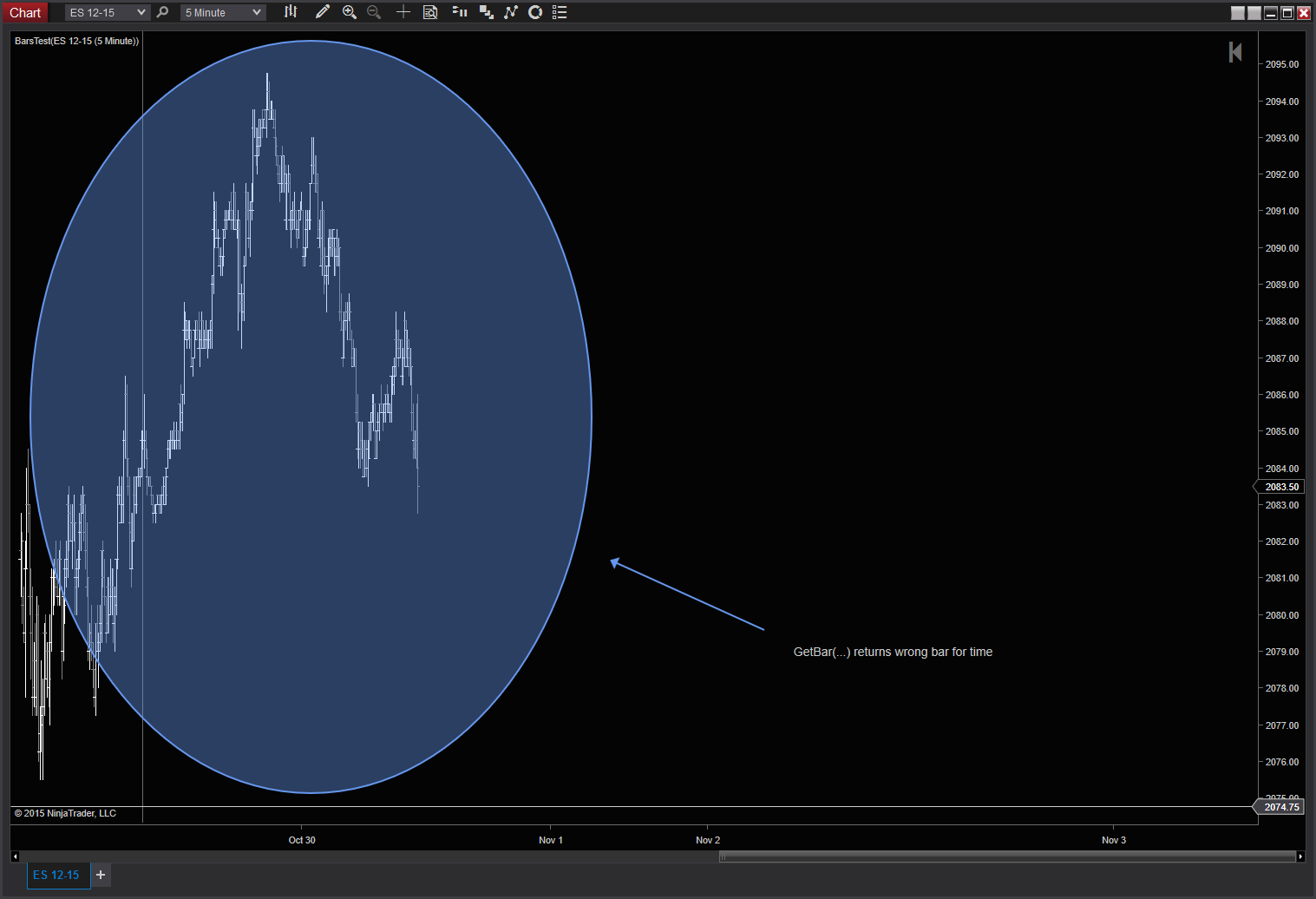 4) When the current session and part of the last session are visible GetBar(...) always returns the first bar of the current session no matter what time you pass as a parameter. Example output, which is not correct, see the times: