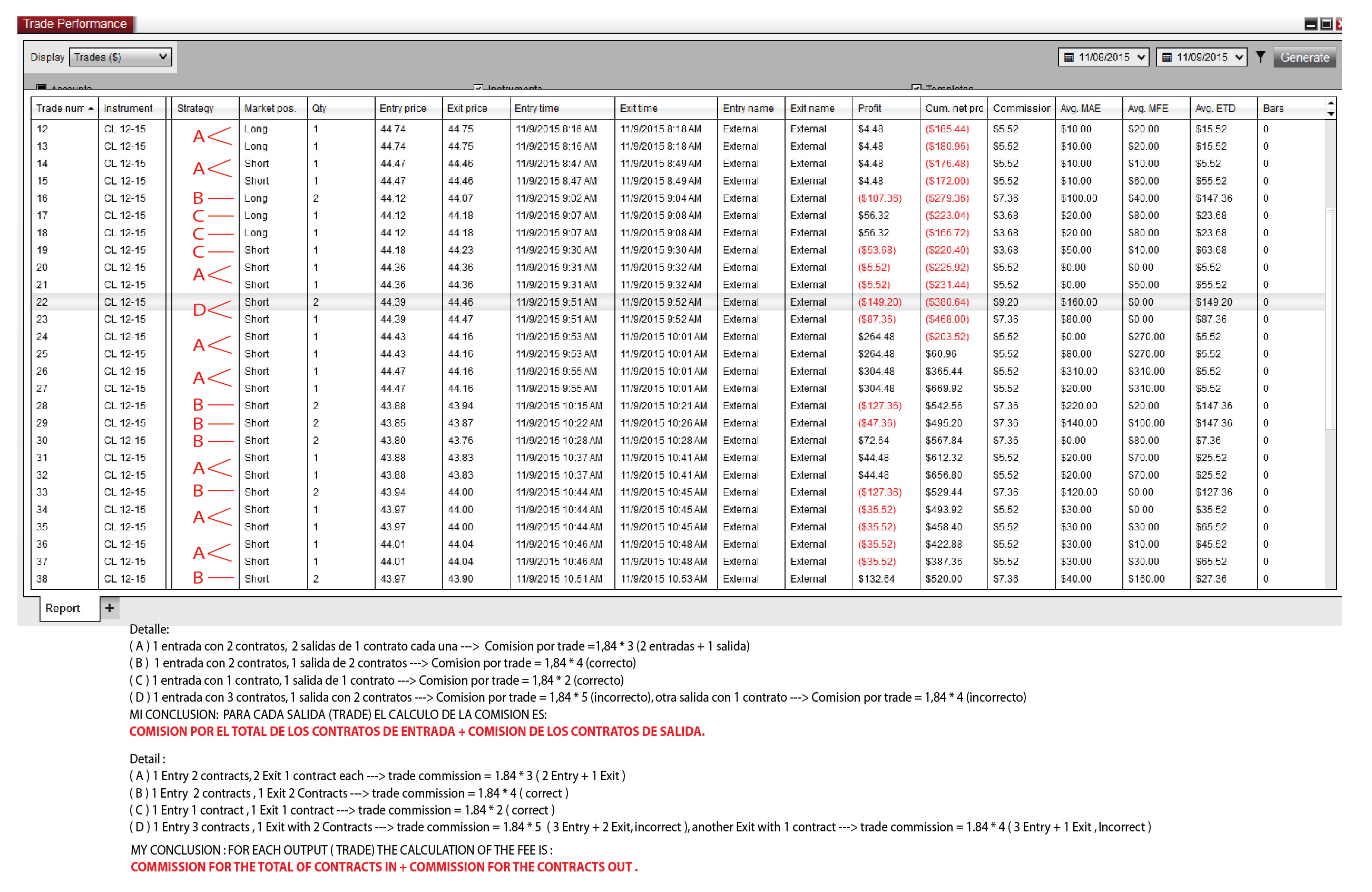 Quiero consultar por una duda que tengo sobre el calculo de las comisiones que hace el NT8.
