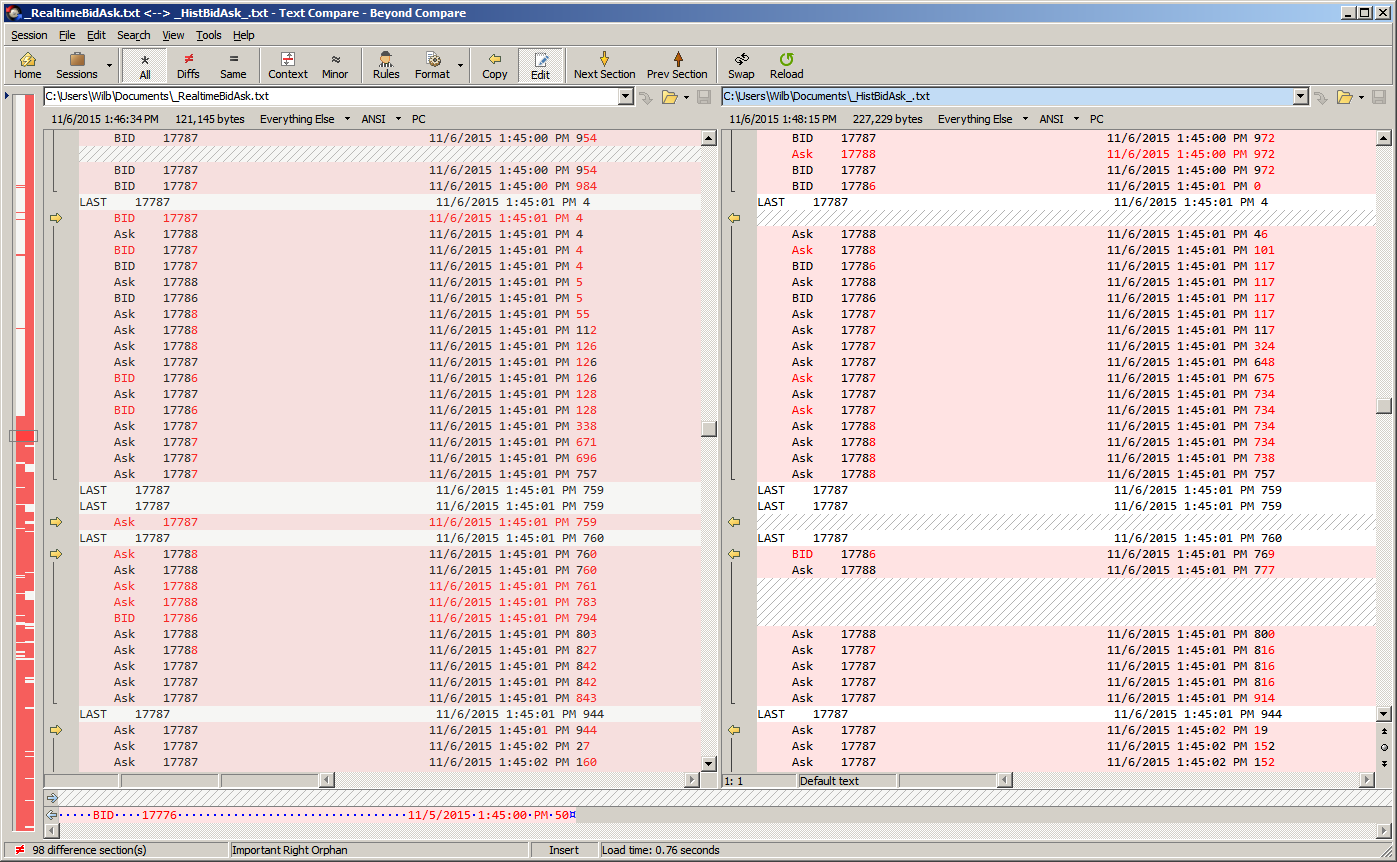 #1: Many of the Bid/Ask differ in milliseconds....