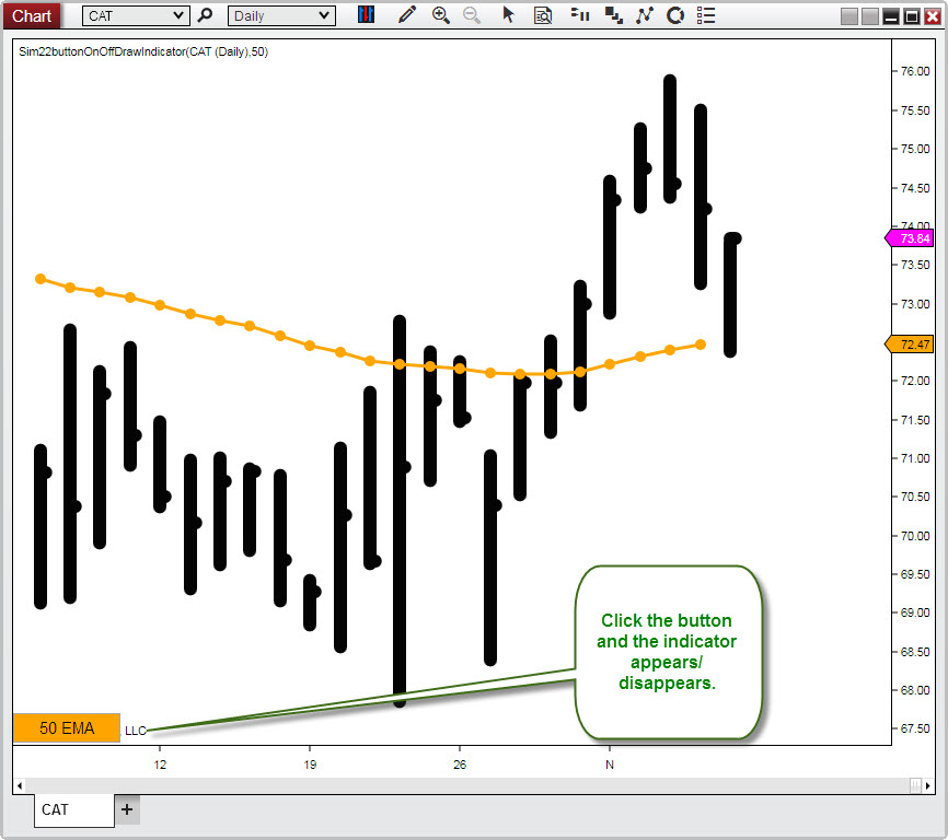 I have an indicator that only plots via "OnRender". I wish to turn this indicator on and off visually via this button.