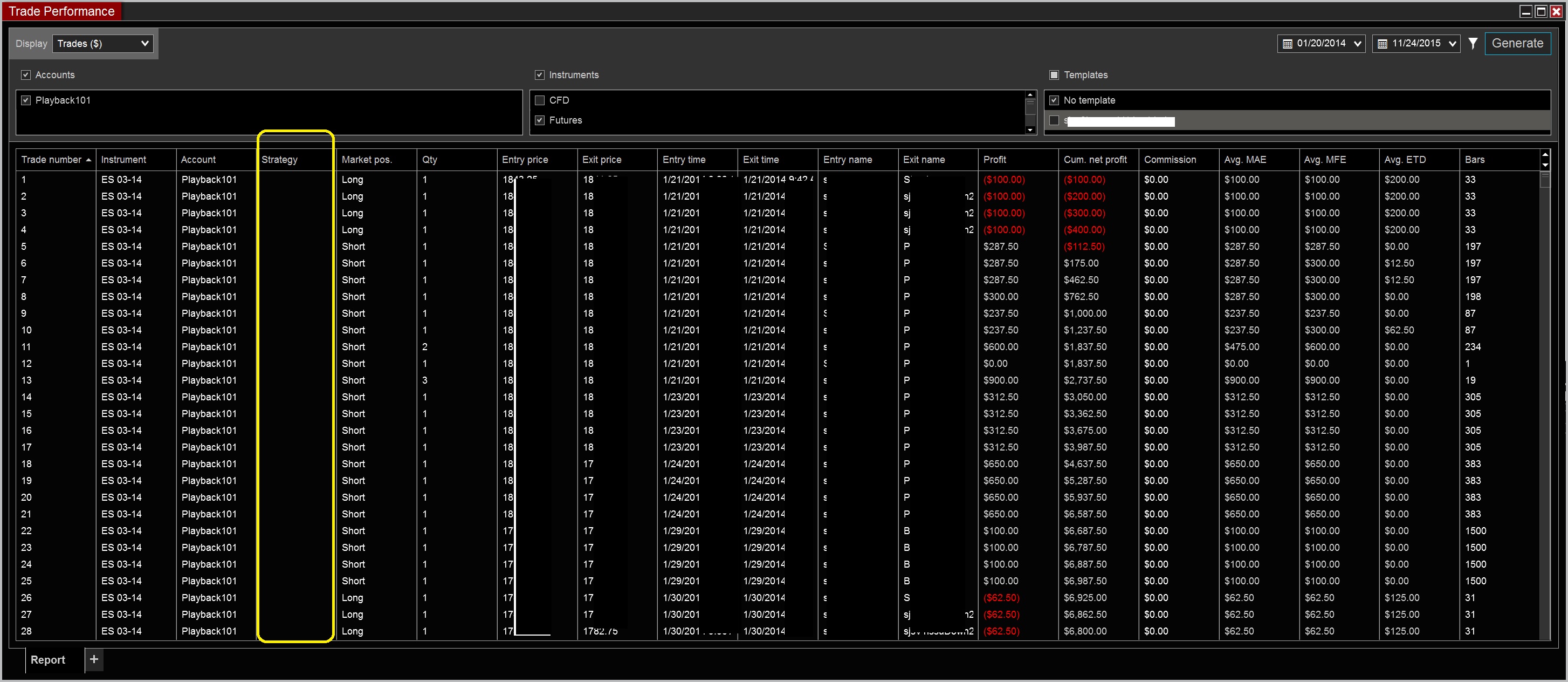 I then ran a Trade Performance report - and all those strategy results are now in the "No Template" with a strategy name.