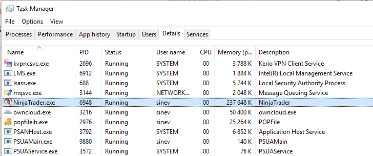 Koganam :Originally posted by koganam View PostThere are no such files. NT shows absolutely no sign of ever starting. Even keeping the Task Manager open and watching, NT never shows up at all at any time; not even briefly on start up of NT. The only indication about NinjaTrader happens if, after trying to start it, I then try to modify or uninstall the installation because nothing happened when I tried to start NinjaTrader,