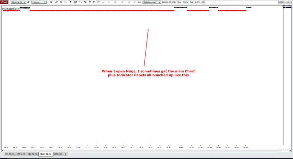 Sometimes when I open Ninja 8 on some of the Tabs all the Indicator Panels plus the main Chart Panel are all bunched up at the top of the viewable area, please see attached.