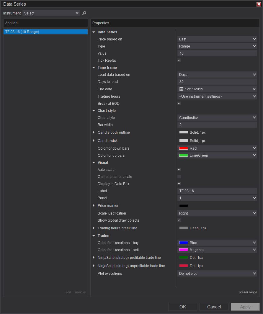 Thank you for your report. This issue was addressed in a previous Beta version, so I'm surprised to see it come up again. I am also not able to reproduce on my end this morning with TF 03-16, but it's possible that there is a difference between our two setups. Can you please give me a screenshot of all of your data series properties, so that I can precisely replicate your chart?Dave I.NinjaTrader Product Management