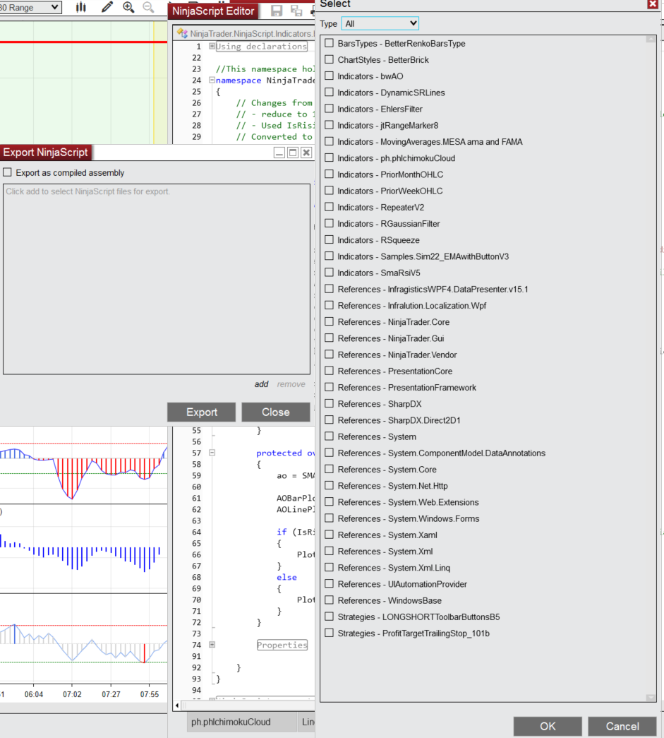 The export function only looks for ninja scripts in the "Indicators" folder, but does not look in the sub directories.Originally posted by NinjaTrader_PatrickH View PostHello cutzpr,
