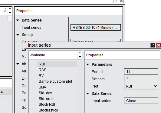 I have loaded my custom indicator with Input series = RSI(14,3).