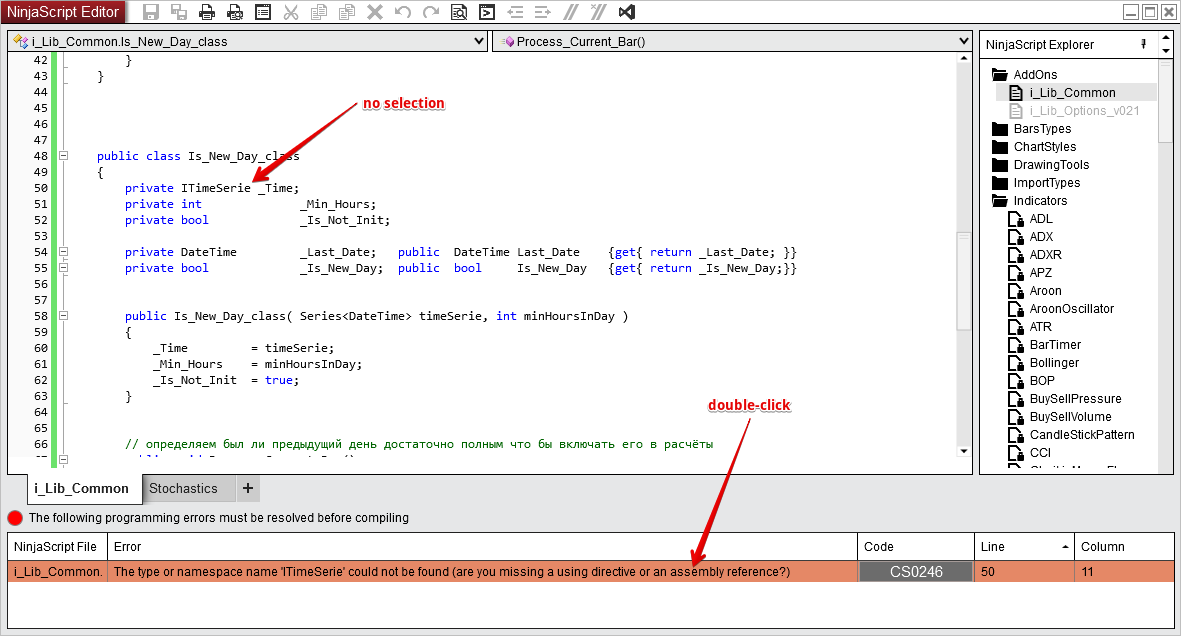 When I double-click at error message (in bottom of window) editor don't react at all.