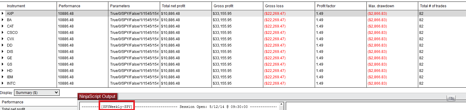 My logging has a header in the format of [StrategyName-PrimaryInstrument] so you can see something is wrong. The results are erroneous and they also change every time the optimization is re-run (i.e. unstable). See attached screenshot for results. The results should be different but they aren't since SPY is being used as the primary instrument for all runs.