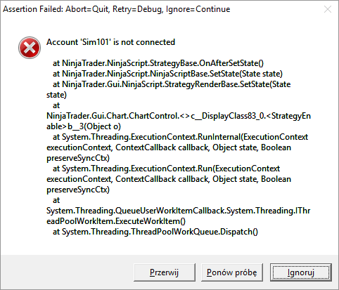 Now , when I start NT it throws an exception which clearly comes from a conflict: no connection yet strategy is enabled.