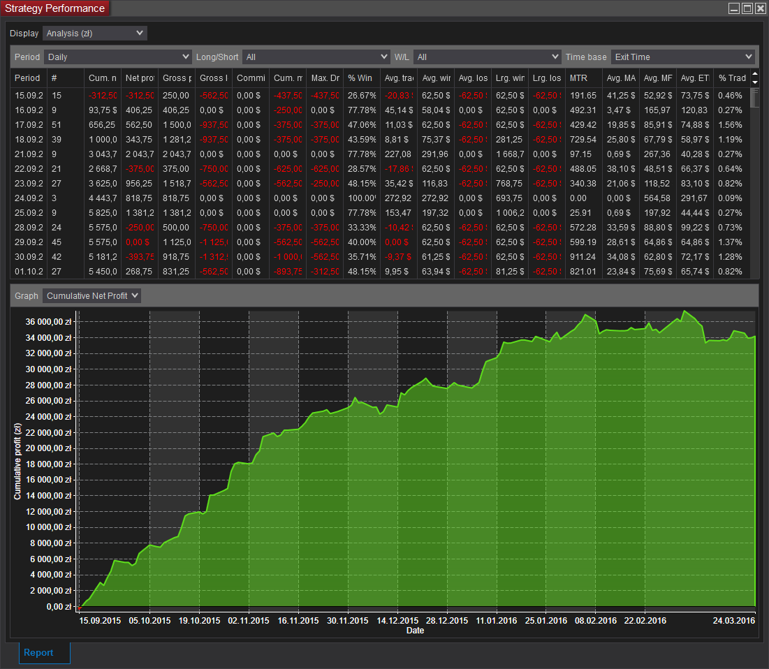 If you have on your PC set up local currency to something other than USD than both Strategy Performance and Strategy Analyzer will present the information in a very inconsistent manner here (zl on the chart and $ in the table):
