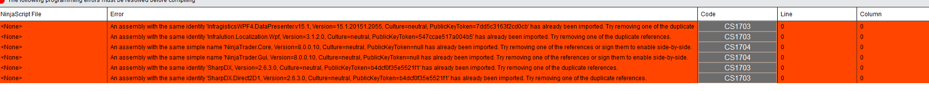 Delete duplicate references and attempt to compile once more.Zachary G.NinjaTrader Customer Service