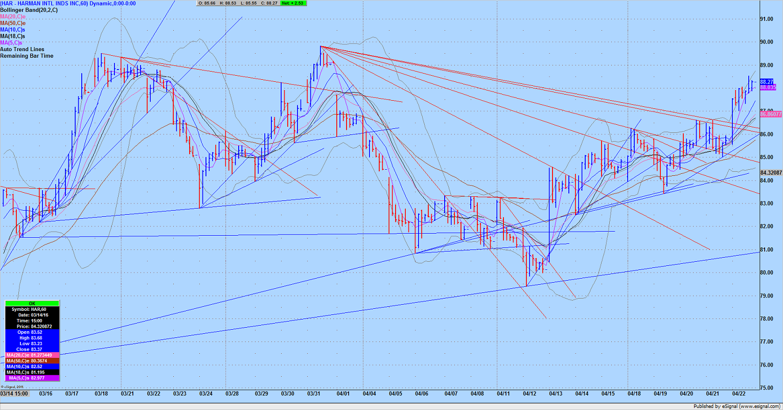 I have attached several images of my friends charts of eSignal – showing the trend lines and how they fit into the charts. Once we establish how to go about it, we could discuss more settings etc.