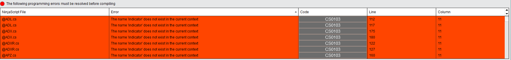 The error seems to be in the compiler. When compiling it returns "indicator" and I *assume* it's looking for "Indicator" (initial caps). I've tried to do a "replace" on one of my indicators but it still compiles in lowercase. (See this small example)