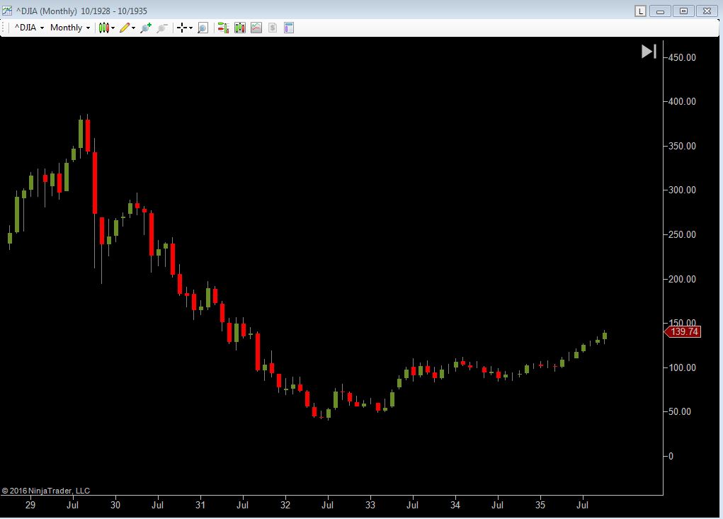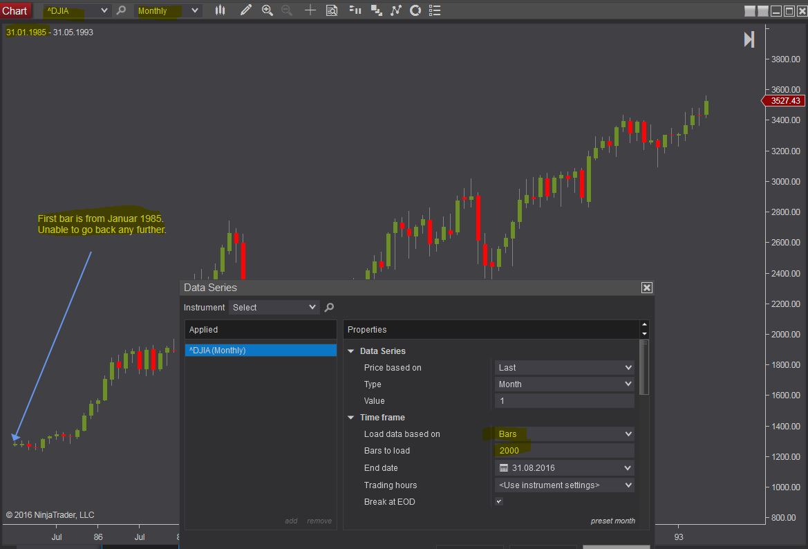 - Dow-Index monthly chart shows only about 30 years while almost 90 years of data would be available from Yahoo