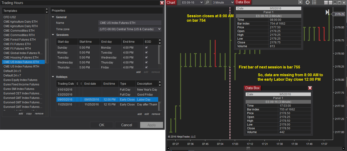 I then added an Early Close record for Labor Day: Trading Date 09/05/2016, End Date 09/05/2016, End Time 12:00 PM.