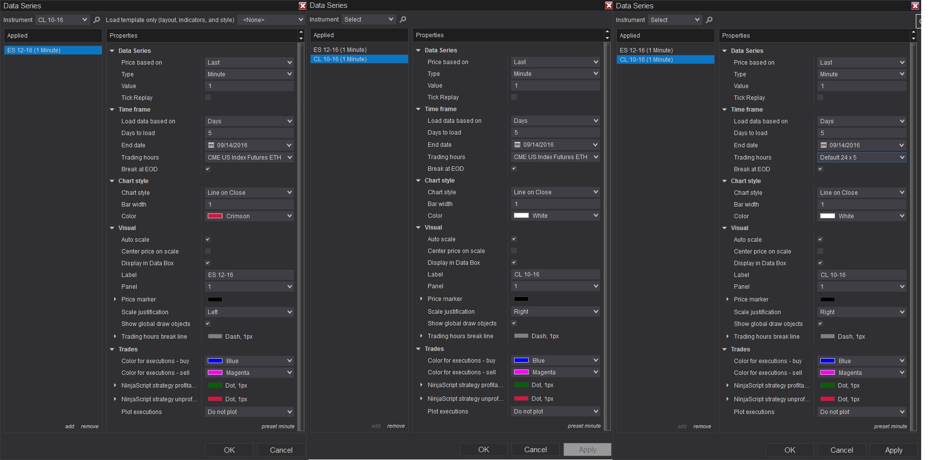 In an effort to recreate the error, I tried the ES/CL again WITHOUT changing the Trading Hours and it worked, then tried again by changing the Trading Hours for both instruments to Default 24/5 and the error occurred.
