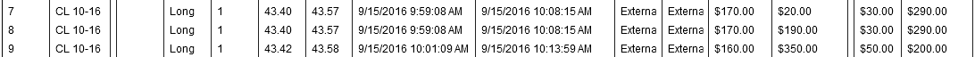 I've bought 3 CL contracts not the same time but pretty close. I've sold 2 in the run up and the last one was stopped out over 10 minutes later. The MFE on the first 2 contract were 290 and that would've been the correct value for the last contract as well as you can see on the attached screenshot that is not the case.