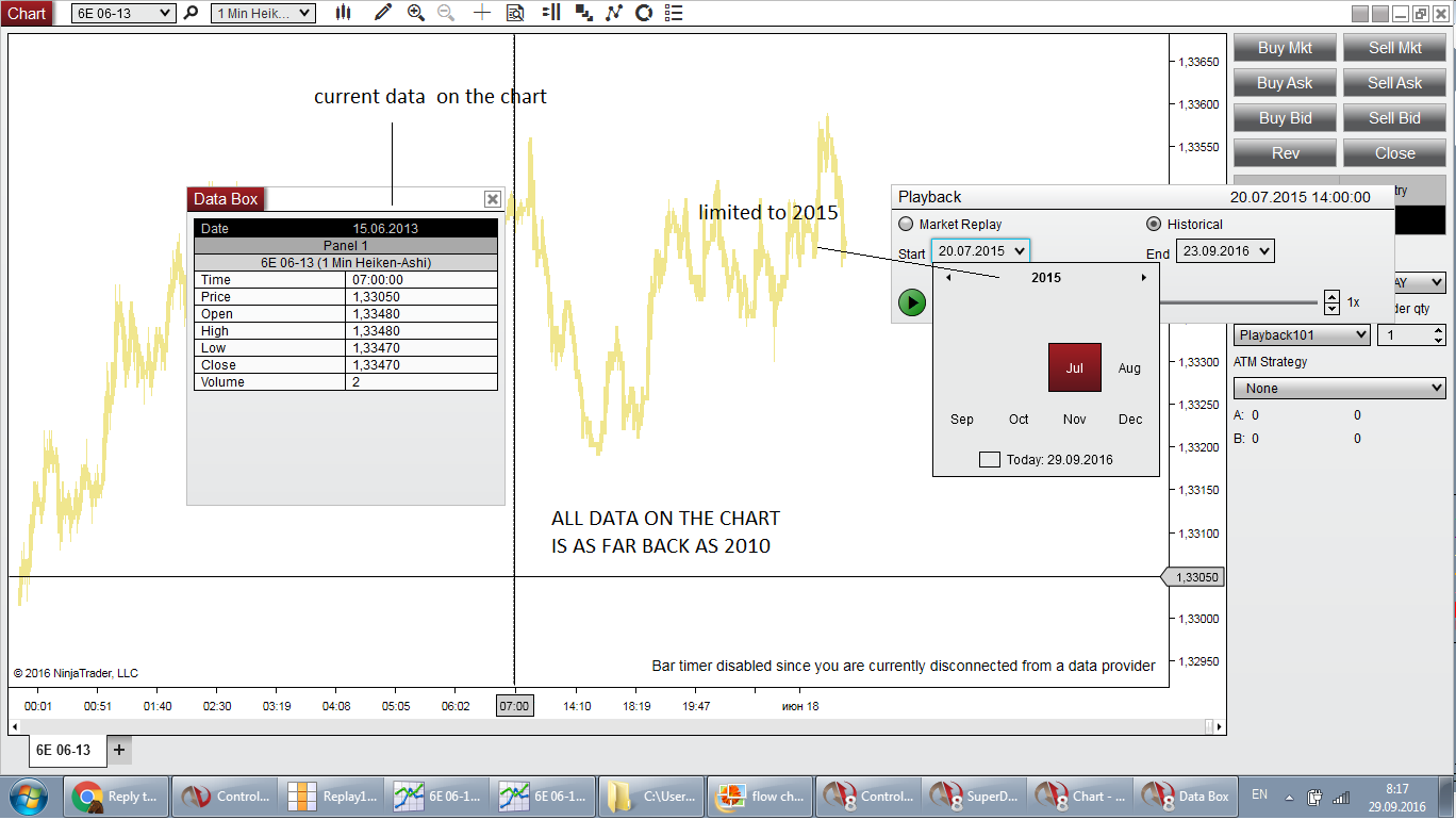 Just like i said i had 10 of data on my chart for 6E,i don`t know what data it was from the demo connection.To my understanding the Hist Replay data should in theory replay what is available on the chart.Am i correct,or it works a bit different?