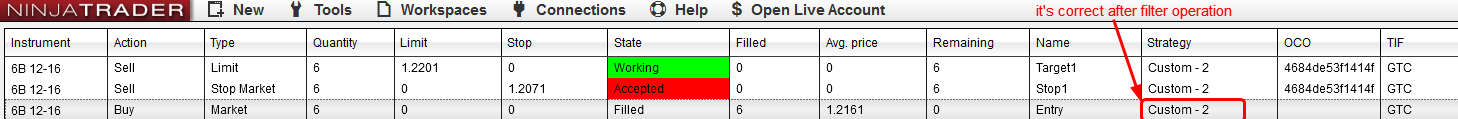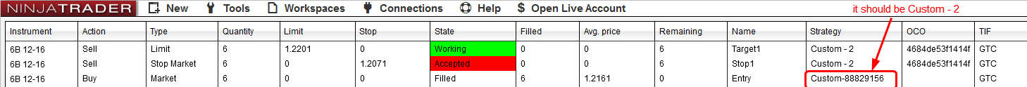 4.see the Orders tab in Control center, the filled order's strategy value is incorrect. see attached order.jpg