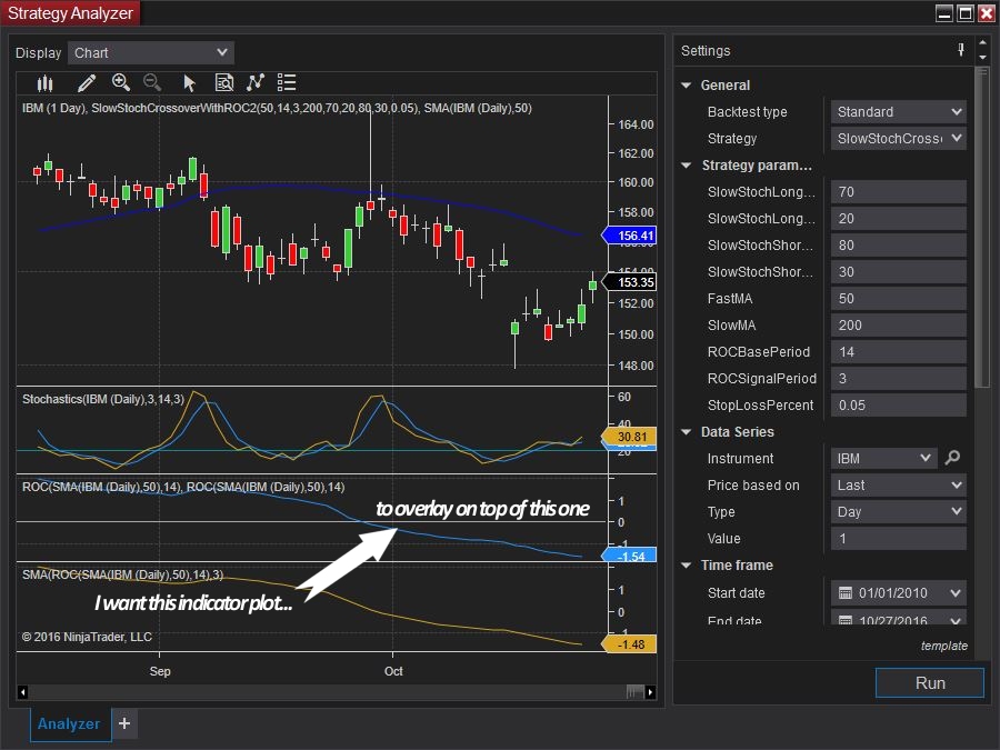 In a Strategy, how can I plot one indicator over another existing indicator?
