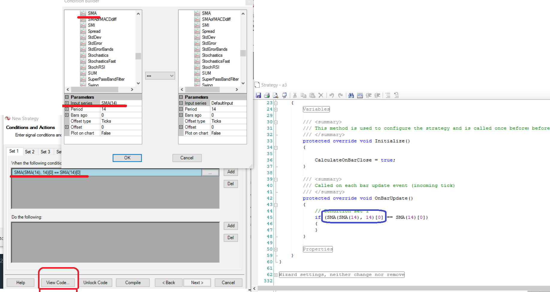 I need to use an indicator output series as input data series on another indicator. I can do it manually using the "input" parameter, but I'm not able to do it via code.