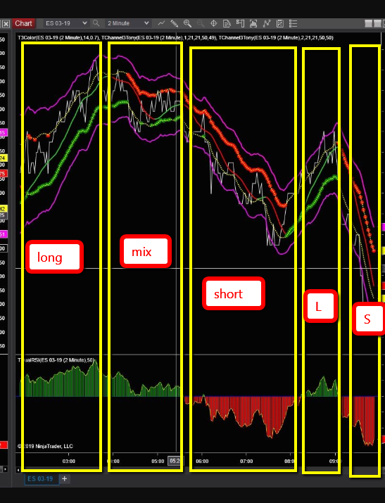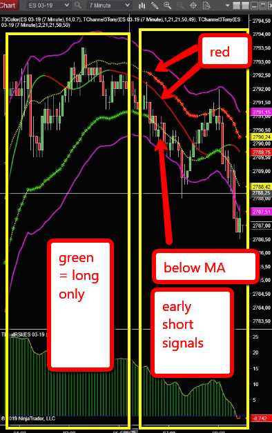 just watch for all color from all indicators turn into the same color. Tony had a very simple saying, 'you gotta believe' he meant seeing is believing, keep watching the chart wait for all color in sync don't trade against the color. On time chart color don't sync well but on tick chart they are more in sync. However by keep watching the time chart you should be able to get your trade eventually.. Above all 'when in doubt stay out' another saying to keep you out of trouble.