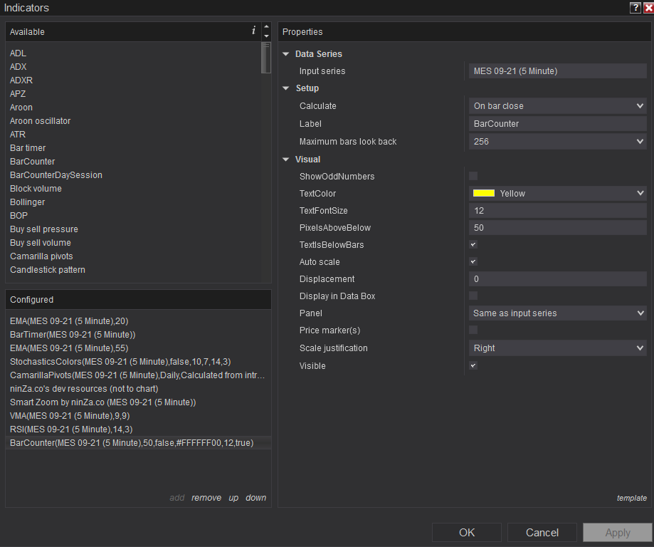 Taking a quick look I see this indicator that may meet your needs: https://ninjatraderecosystem.com/use...d/bar-counter/