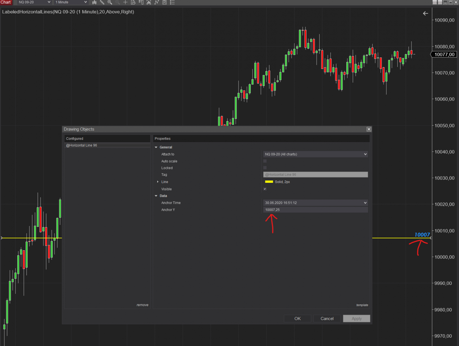 I´m using the LabeledHorizontalLines indicator submitted by NinjaTraderChrisL here: https://ninjatraderecosystem.com/use...izontal-lines/