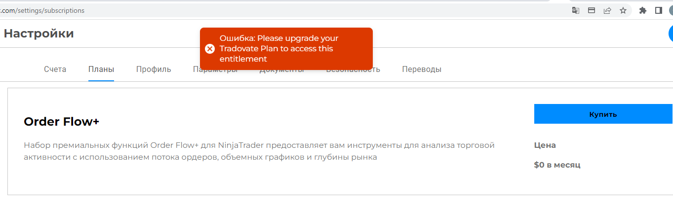 The Order Flow+ plan addon can be charged to your account. Please ensure you have linked an ACH bank account and funded your account.I want to connect the Order Flow+ function, the cost is $0, I enter the bank card details and it gives an error, what's the problem - ? I need Order Flow+ function for demo versionChelsea B.NinjaTrader Customer Service