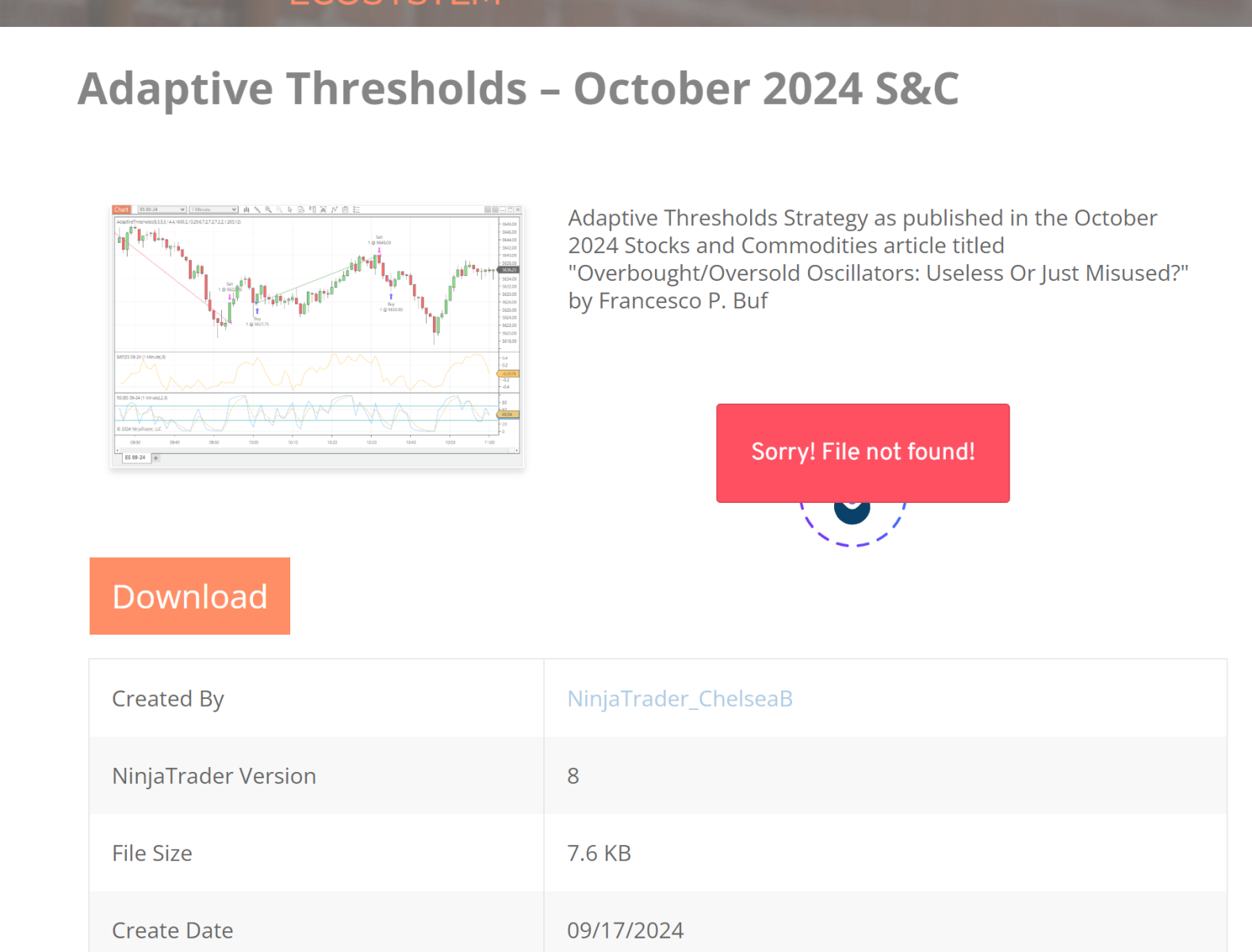 when i try to download the "Adaptive Thresholds - October 2024" on Ninja Trader Ecosystem, the file not found.