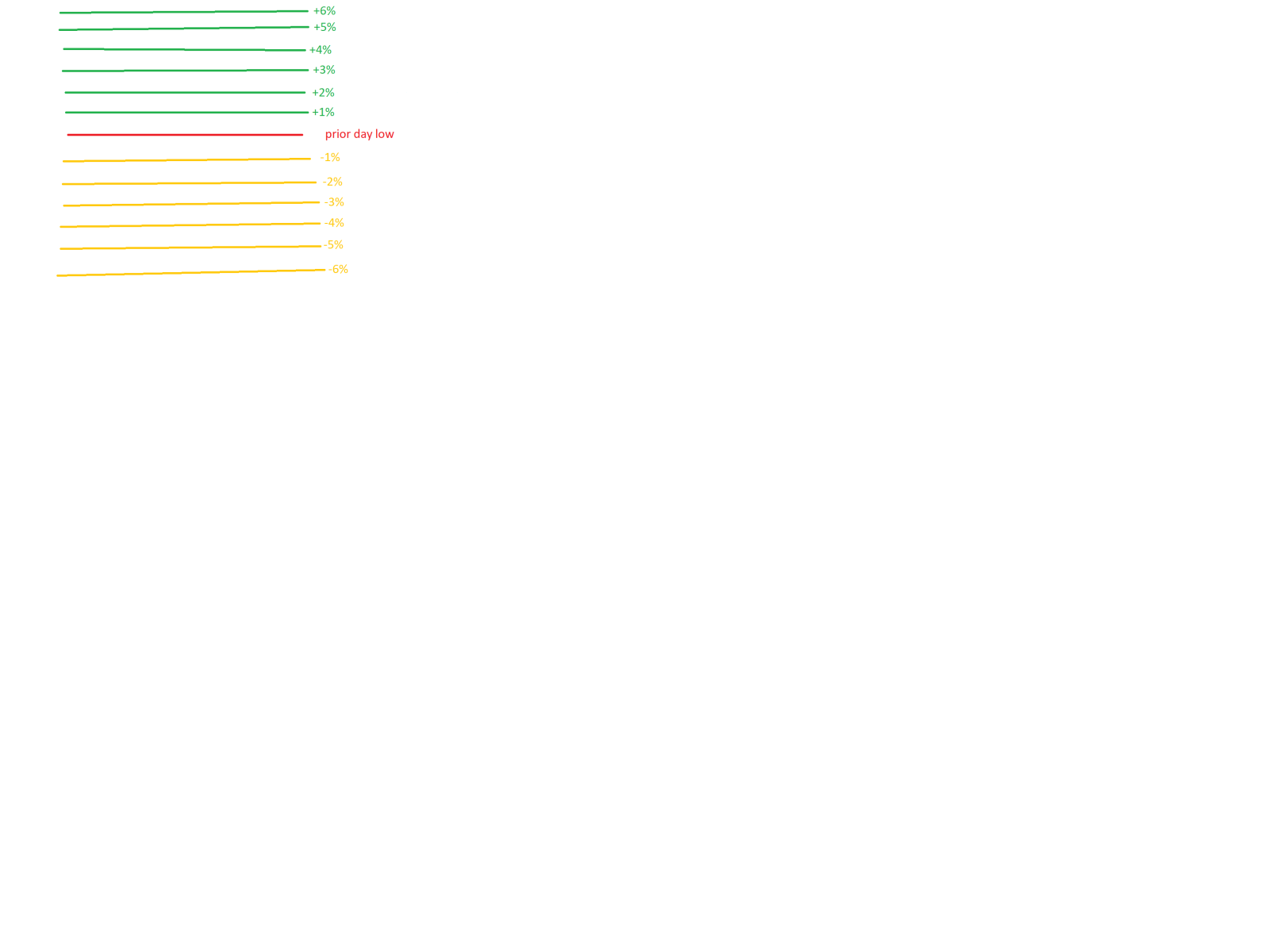 I wanted to use the prior day indicator to plot every day a horizontal line 1% above and 1% below prior day close,theses line will be usable on builder to testings.Any idea of how to do that? if someone can give me just 1 exemple for 1 line I can work to continue ,to achive 6 lines below and 6 line above with 1% intervals.