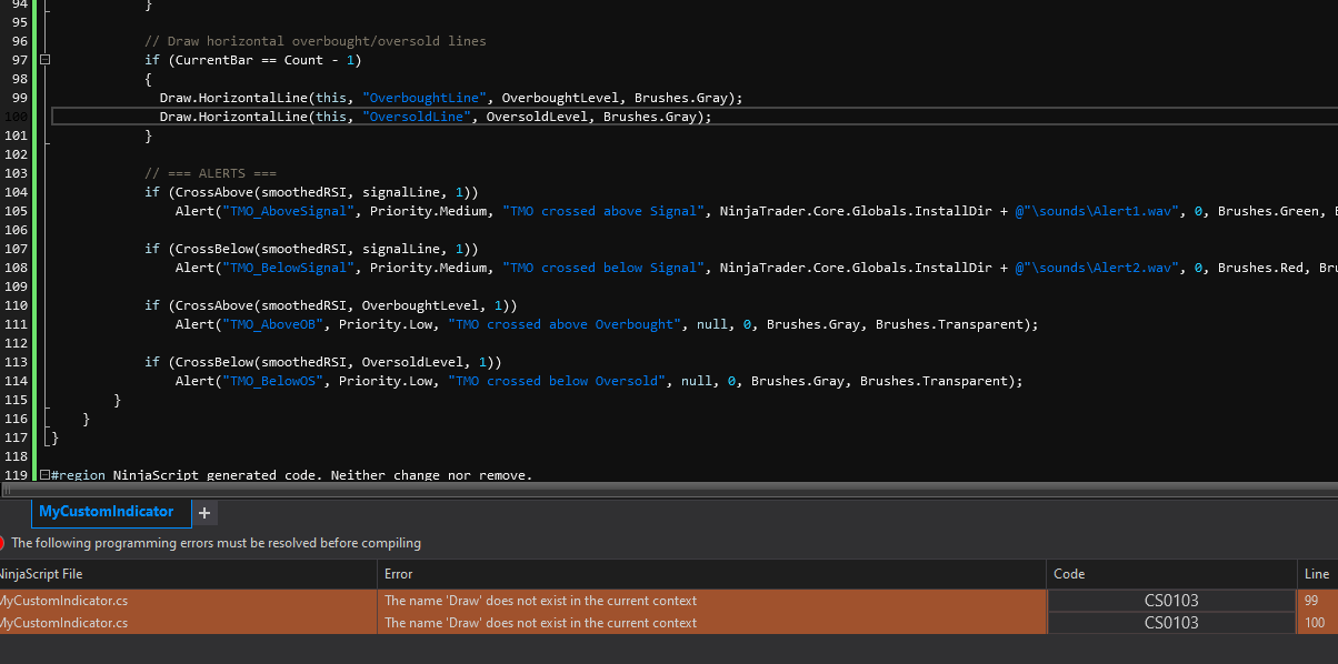 We highly encourage that you create a new NinjaScript yourself using the NinjaScript Editor, and use the code generated by ChatGpt as more as suggestions and guide than the actual code generated.
