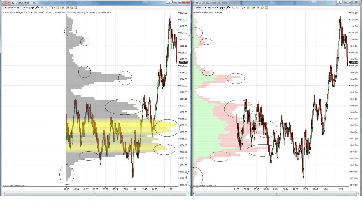 Interesting comparison, thanks for sharing results.Originally posted by John.2000Also when I compare this histogram to Gomi Volume Profile, I notice some quiet a few differences. For the comparison I set the chart to 1 day's worth of data. the differences are subtle, however there's enough to make you wonder what's causing the difference.